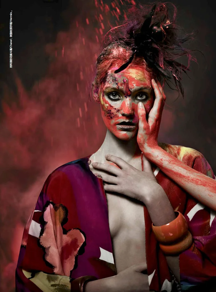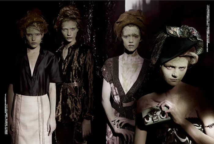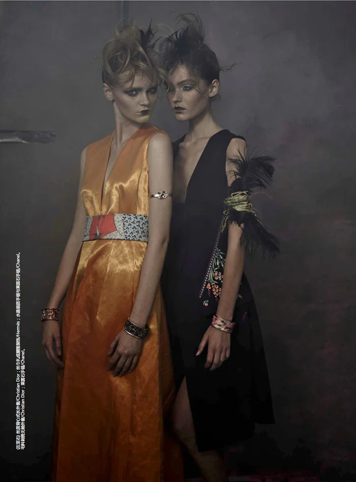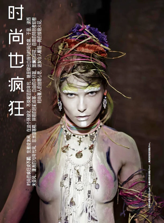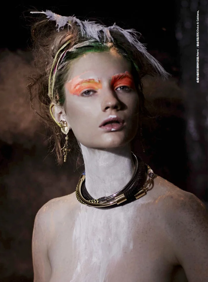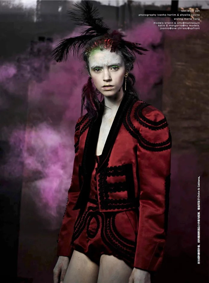 Models Kristin ZaKala, Amy Willock, Katia Zhgirouskaya, Margarita Mudritskaya, Joanna Przytula, and Chrissy Hart are tribal fashion goddesses for Singapore’s luxury magazine Icon, published in English and Chinese for bilingual women. While Icon maintains an Asian Perspective, stylist Marie Liang and photographers Ivanho Harlim and Shysila Novita cross the Indian Ocean for inspiration in ‘A Wonderful World’.