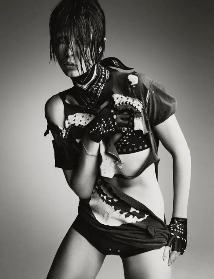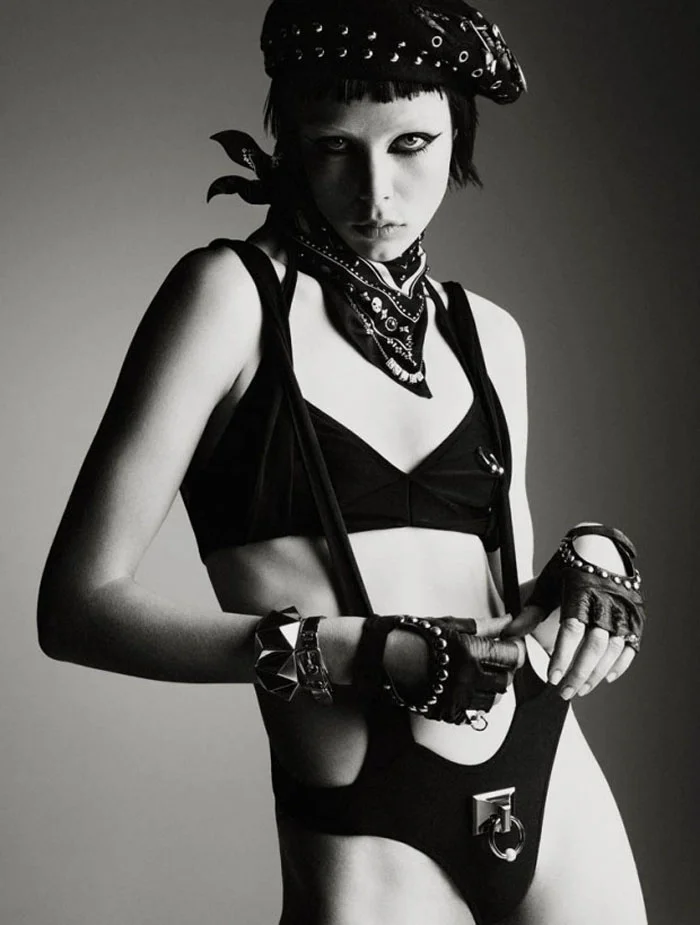 /Top model Edie Campbell is a fierce and edgy ‘Rebel’ styled by Karl Templer in fierce little nothings. Patrick Demarchelier is in the studio for Interview Magazine May 2015./ Makeup by Diane Kendal; hair by Anthony Turner