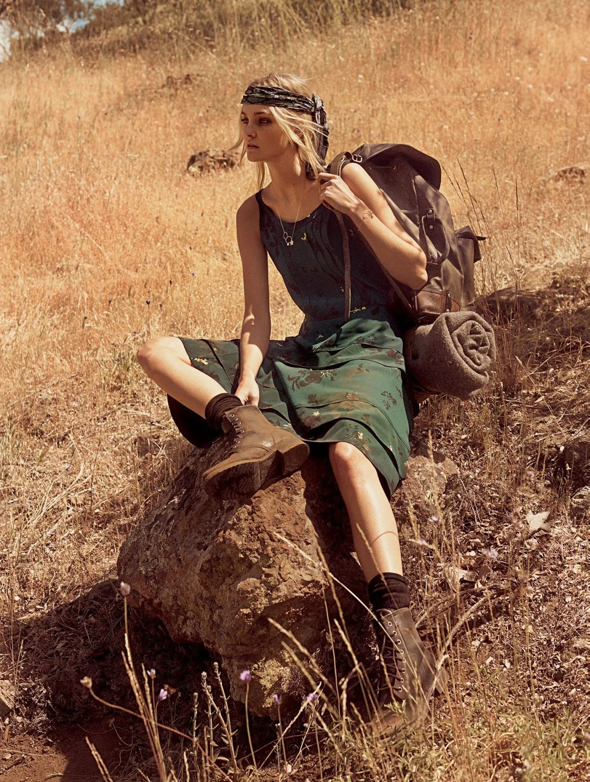 The duo is lensed by Mikael Jansson, styled in bohemian 70s style by Grace Coddington for Vogue US June 2015.