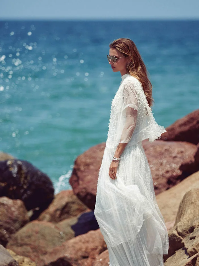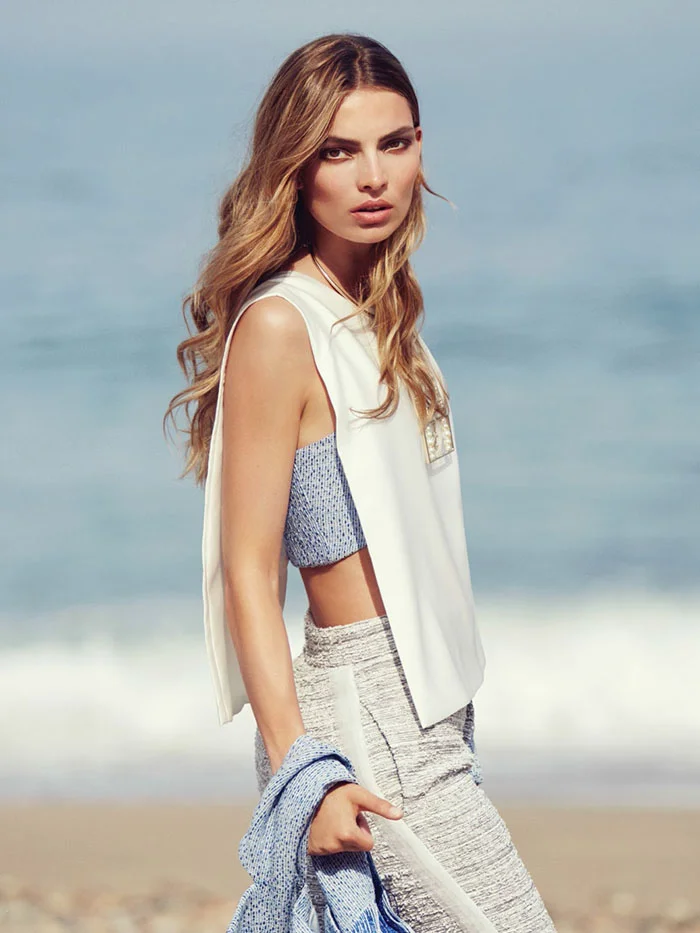 /Model Carola Remer wanders seaside in ‘Marea De Talento’, lensed by Jason Kim. Valentina Collado styles Remer in feminine, summer blue and white looks for Vogue Mexico June 2015./ Hair by Carlos Arreola; makeup by Zulema Ramirez