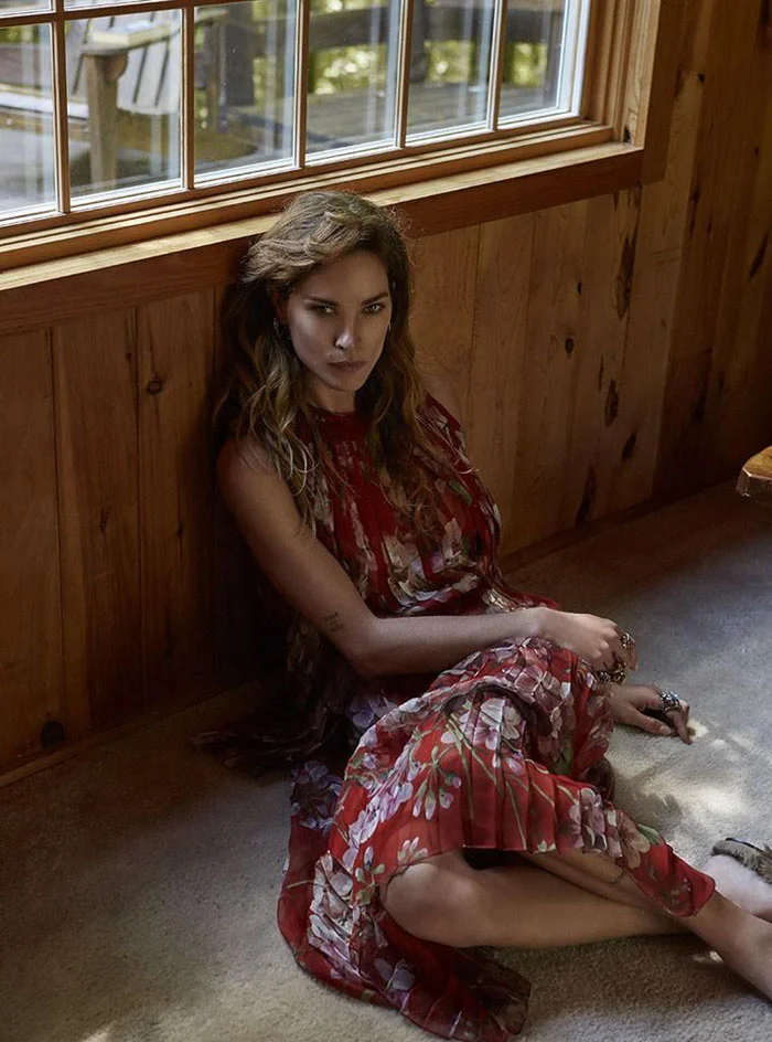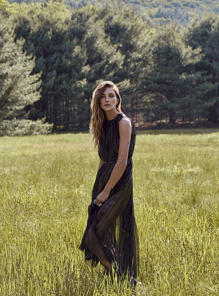 /Model Erin Wasson walks ‘The Road Less Traveled’, styled in daytime romantic elegance in images lensed by Christopher Ferguson for Harper’s Bazaar Arabia July 2015./ Hair by Owen Gould; Christine Cherbonnier