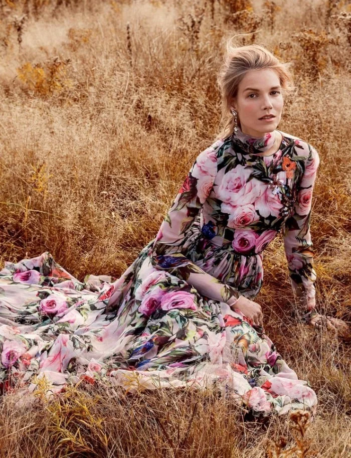 /Finland's Suvi Koponen contemplates an escape from her simple life in 'What Dreams May Come', styled by Natasha Royt. Photographer Sebastian Kim captures the bucolic beauty for Vogue Russia February 2016./ Hair by David von Cannon; makeup by Sil Bruinsma