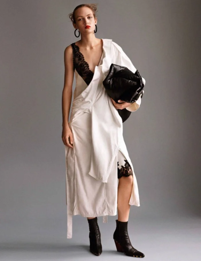 /Models Adrienne Jüliger, Harleth Kuusik, Karly Loyce, Estella Boersma, Issa Lish, Alexandra Elizabeth, Roos Abels, Frederikke Sofie, Marjan Jonkman, and Julia Hafstrom frame another major fashion statement from the February issue of Vogue Paris. Photographer Alasdair McLellan is in the studio, with styling by Suzanne Koller./ Hair by Anthony Turner; makeup by Peter Philips