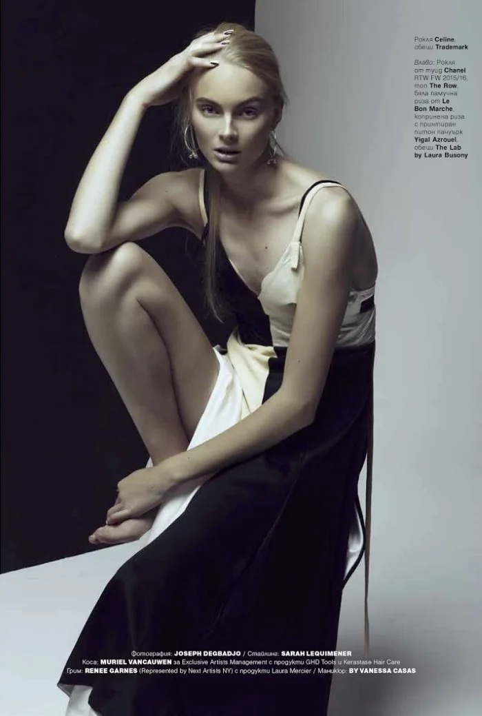 Model Julia Schneider showcases a 'Minimal Attitude', lensed by Joseph Degbadjo.  Sarah Lequimener styles the intellectual fashion statement for Elle Bulgaria./ Makeup by Renee Garnes; hair by Muriel Vancauwen