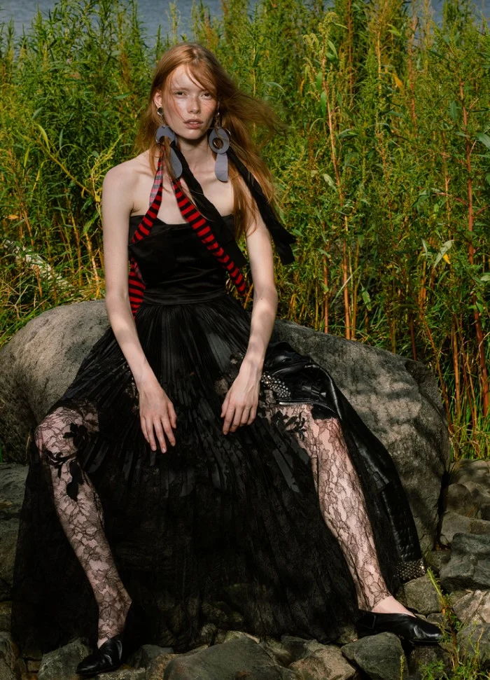 /Model Julia Hafstrom wears long, floaty black and white sheer layers styled by Natasha Royt in 'Follow the River'. Photographer Sebastian Kim captures the spring's fashion baptism for Vogue Russia January 2016./ Hair by Diego De Silva; makeup by Kristi Matamoros