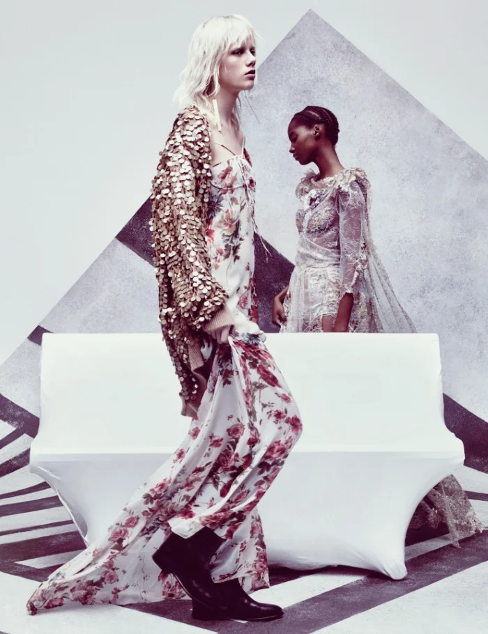 Models Marjan Jonkman, Lineisy Montero, Tami Williams, Roos Abels, Molly Bair, Greta Varlese, Karly Loyce, and Rianne van Rompaey front a spectacular fashion fantasy, styled by Edward Enninful in 'Day Dreams'. Photographer Craig McDean captures the deconstructed, saturated with intellect beauty from Givenchy by Riccardo Tisci, Valentino and more for W Magazine February 2016./ Hair by Orlando Pita; makeup by Peter Philips