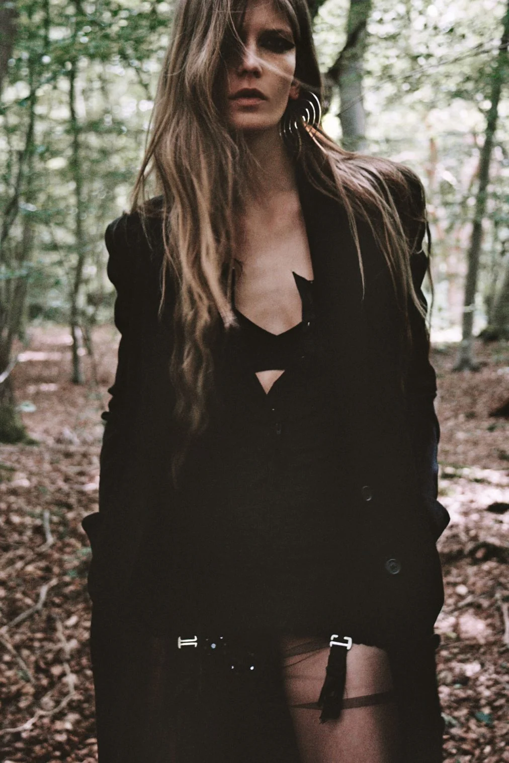 Fall’s codes are of a rogue cast: devil-may-care, defiant and, of course, all black as any good outlaw will tell you. Vigilante, meet Hell’s Angels. For Models.com Marie Zucker photographs Valerija Kelava as the role of anti-heroine on the lam. A defector from the the more well mannered, buttoned-down society. Styled by Rosa-Safiah Connell, modesty is swapped with gothic lace, stockings, sheer fabric and familiar insignias to make a statement–all the way down to a well-placed chopper. Bandit like cat-eyes by Nobuko Maekawa have obvious and fitting insinuations. See how best dressed to be a member of the fashion resistance in our latest editorial below.