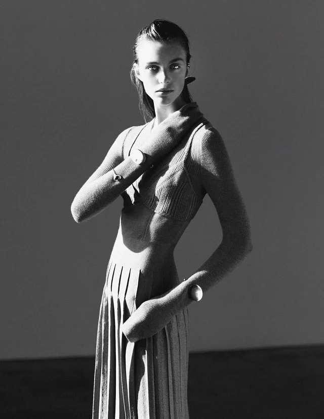 /Model Hedvig Palm is styled by Anna Katsanis in 'Time Loop', lensed by Oliver Katibi Stalmans for Harper's Bazaar Kazakhstan October 2016./ Hair by Leon Gorman; makeup by Colleen Runne
