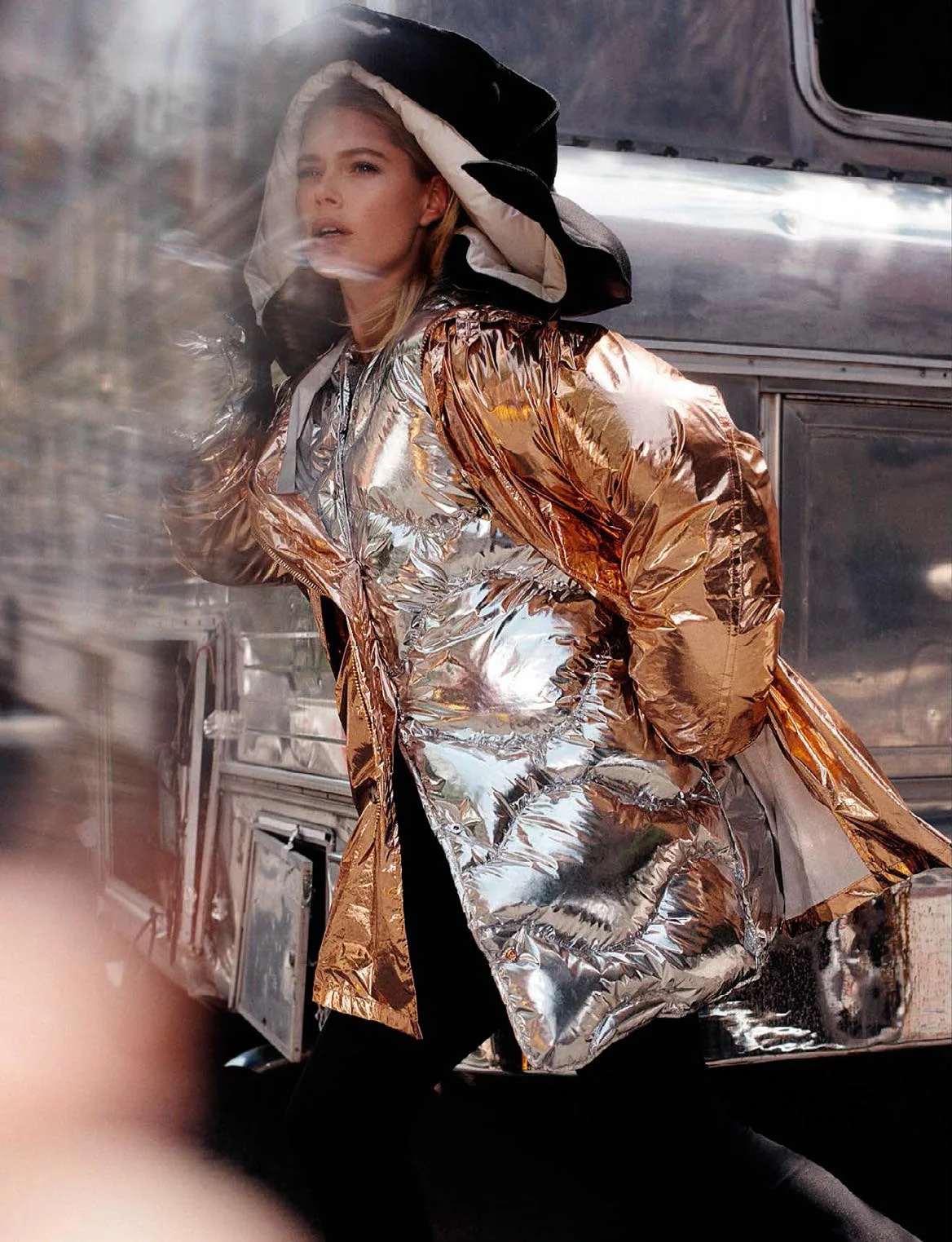 /Supermodel Doutzen Kroes gets cozy, styled in downy winter looks by Sara Fernandez. Photographer Benny Horne flashes 'Peso Pluma' for Vogue Spain November 2016./ Hair by Mark Hampton; makeup by Benjamin Puckey