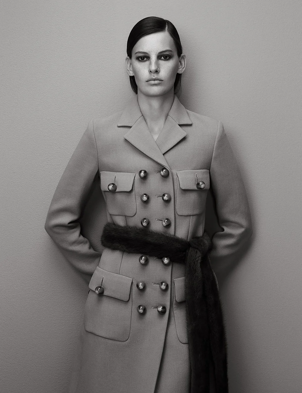Model Amanda Murphy is styled by Yeon Ju Kim in luxe tailoring. Photographer Hong Jang Hyun is in the studio for Harper's Bazaar Korea November 2016./ Makeup by Yumi Lee; hair by Romina Manenti