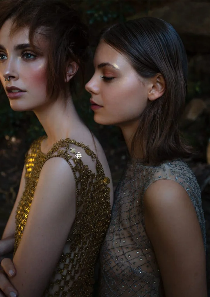 Photographer Petter Karlstrøm flashes Zoe & Casey at IMG Models and Jessica at Priscilla's, styled by Cara Weinstock in 'Our Dark Forest' for Factice Magazine November 2016./ Hair by Isobel Claire; makeup by Jess Chapman