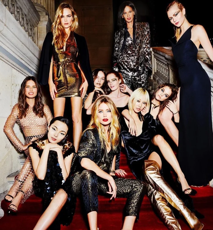 /L’Oreal Paris spokesmodels take over The Sunday Times Style Party edition, photographed. by Ellen von Unwerth in vibrating images. The glam squad group includes Barbara Palvin, Karlie Kloss, Doutzen Kroes, Liya Kebede, Xiao Wen Ju, Soo Joo Park, Alexina Graham, Natasha Poly and Bianca Balti. On beauty, Charlotte Willer and Karim Rahman turn up the volume with bold makeup ranging from gold eyeshadow to vixen-woman bold red lipstick shades. Stephane Lancien worked on hair