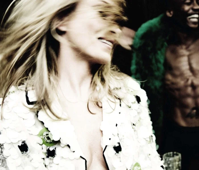 /Supermodel Kate Moss gets cozy and happy in the pages of Vogue Italia February 2016. Photographer Mario Testino captures the dark and delighted mood of 'Wild Fun', with styling by Katie Grand./ Hair by Christiaan; makeup by Charlotte Tilbury