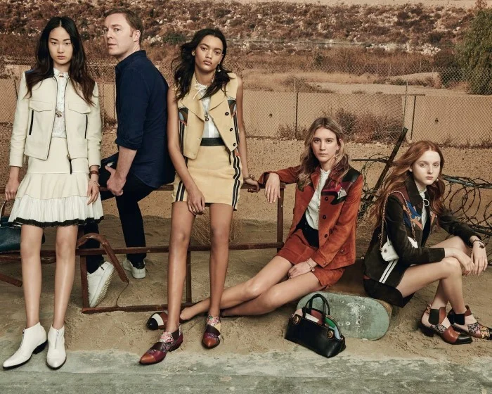 /The gangs all here. Models Valery Kaufman, Harleth Kuusik, Hyun Ji Shin, Lameka Fox, and Madison Stubbington front U.S.A. All the Way, styled by Patrick Mackie. Chris Colls captures the fashion short for W Magazine.
