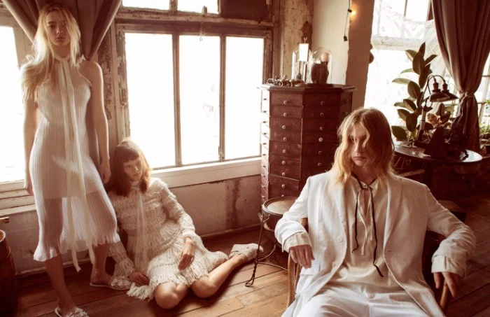 Models Irina Kravchenko, Alexandra Barna and Steph Smith are styled by Natasha Royt in 'The Dreamers', a poetic story in black and white. Sebastian Kim is behind the lens for Vogue Russia March 2016./ Hair by Franco Gobbi; makeup by Marla Belt