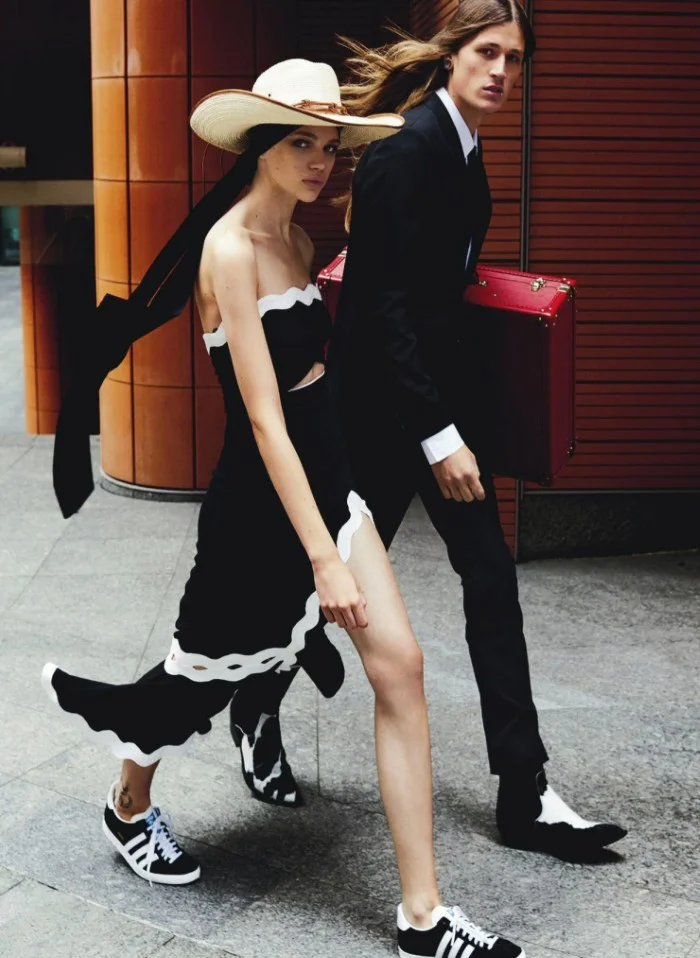 /Models Stella Lucia and Nic Smith are world travelers, styled by Sarajane Hoare in 'Urban Outback'. Photographer Mario Testino captures the duo on the road for Vogue Australia April 2016./ Hair by Marc Lopez; makeup by Dotti