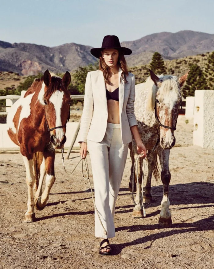 /Model Amanda Murphy enjoys 'The Wild Country', styled in relaxed country looks by Verity Parker. Photographer Quentin de Briey flashes Amanda for Vogue UK May 2016.