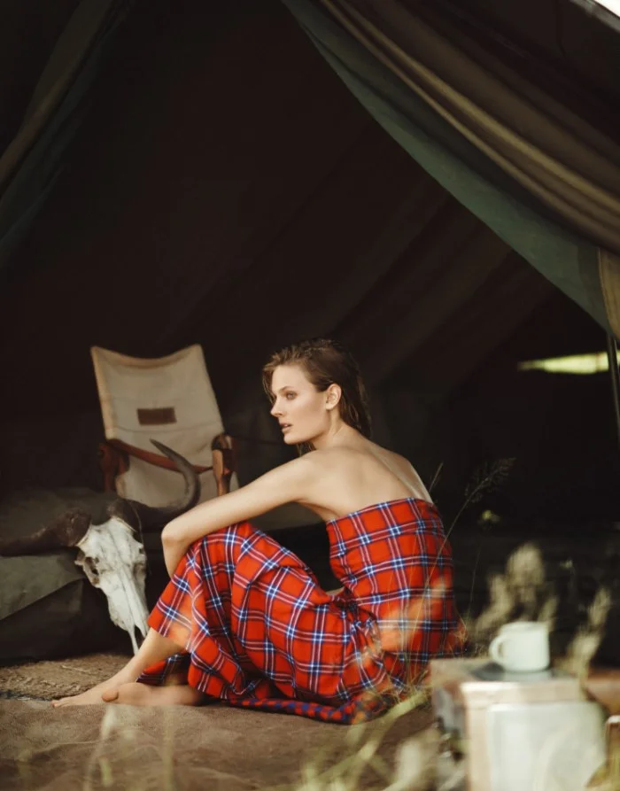 Top model Constance Jablonski is styled by Havana Laffitte in safari looks from Versace, Isabel Marant, Celine, Lanvin and more. Boo George treks to Tanzania, capturing 'Song of Africa' for Porter Magazine Summer 2016./ Hair by Samantha Hillerby; makeup by Emma Kotch