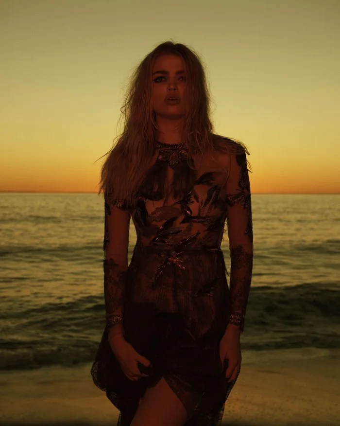 /Top model Daphne Groeneveld is lensed by Jan Welters in 'Twilight of the Goddesses', styled by Natalia Bengoechea for S Moda April 2016./ Hair by David Cox; makeup by Lisa Storey