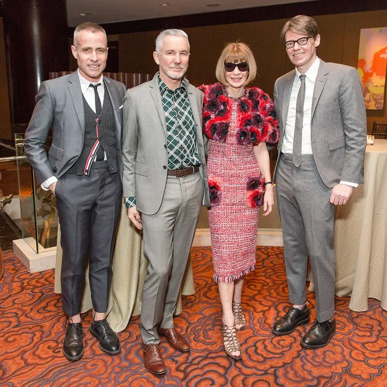 Thom Browne -- Andrew Bolton's partner --, Baz Luhrmann, Anna Wintour and Andrew Bolton at the April 2015 Vilcek Prizes in New York.