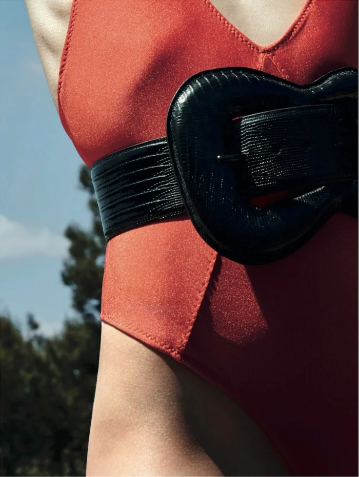 /Model Vivien Solari is a scarlet woman, styled in plenty of red transition looks by Nicola Knels. Photographer Thomas Lohr captures 'Pure Sunshine' for Vogue Germany July 2016./ Hair & makeup by Uli Wissel