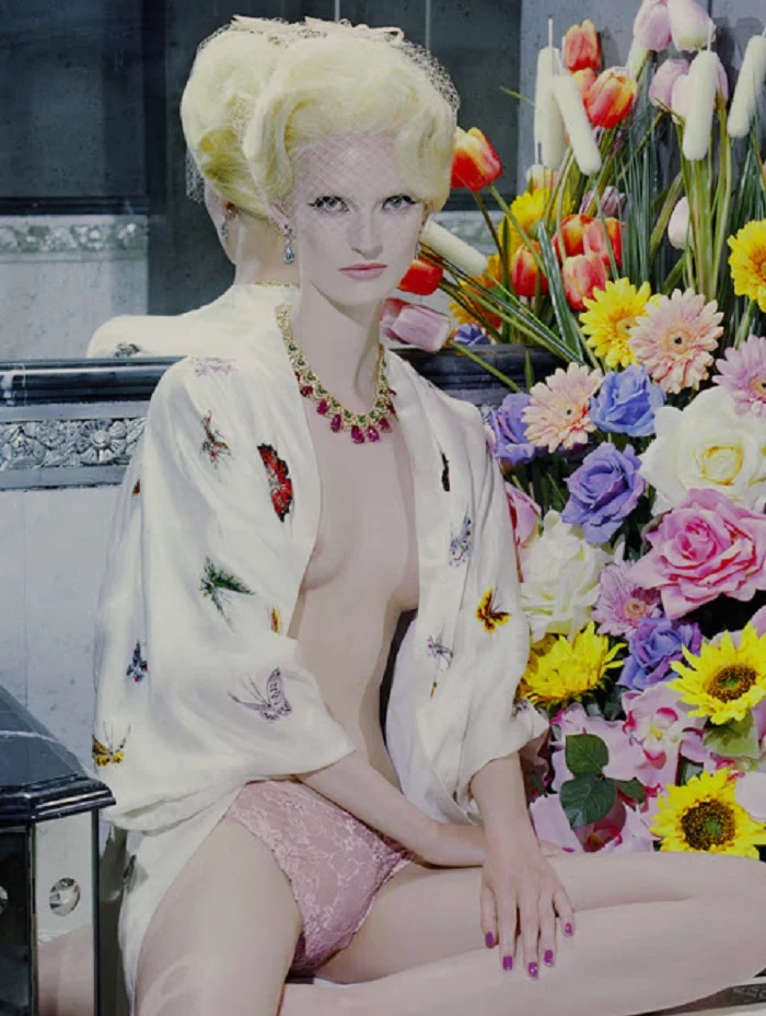 /Model Helena Greyhorse is styled by Alice Gentilucci in a beauty editorial lensed by Miles Aldridge for Vogue Italia July 2016./ Hair by Seb Bascle; makeup by Lloyd Simmonds