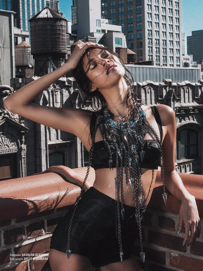 Model Juana Burga reflects Manhattan's summer heat, styled in hot body summer looks by Pablo Patané. Photographer Elio Nogueira captures the mega dose of sex appeal for L'Officiel Azerbaijan August 2016./ Hair by Jerome Cultrera; makeup by Victor Noble