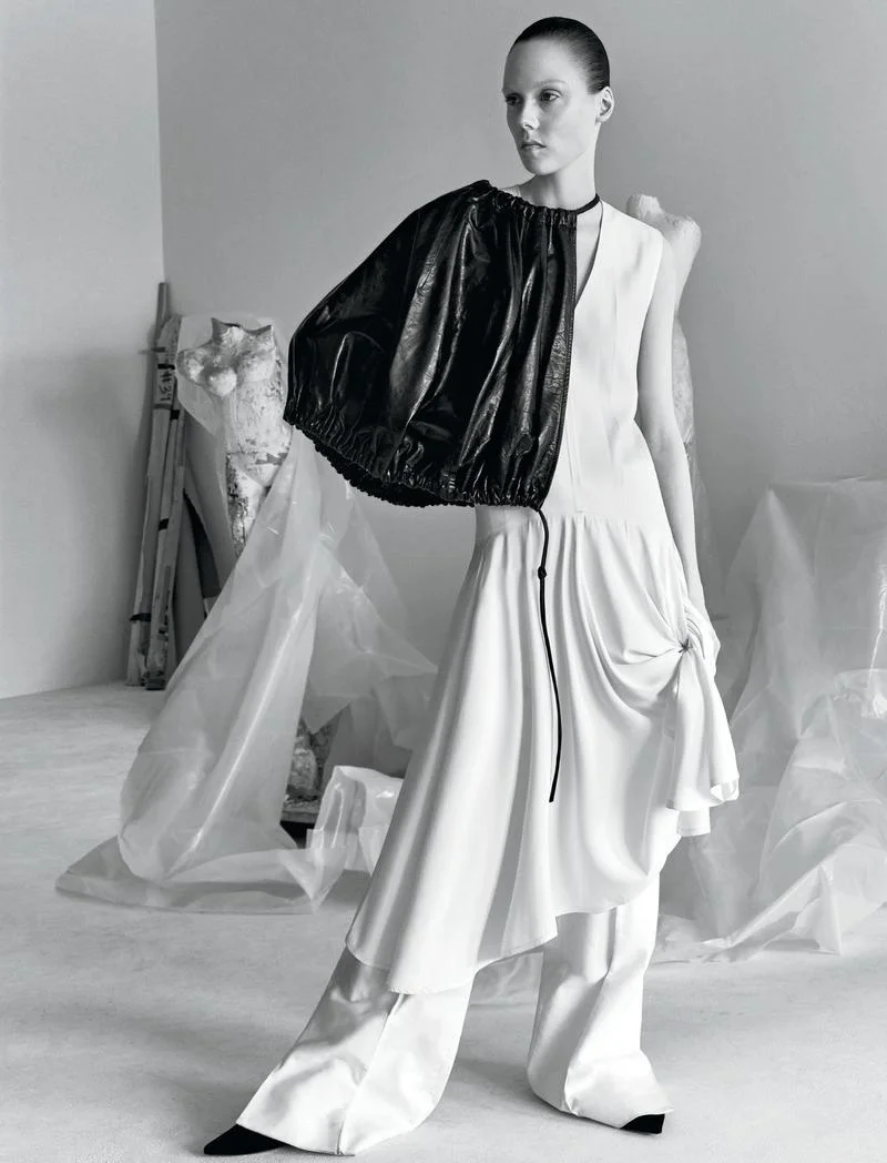 /Model Kiki Willems is styled by Karl Templer for 'Inner Elegance' , a collection of impeccably constructed modern silhouettes. Patrick Demarchelier is in the studio for Interview Magazine August 2016./ Hair by Duffy; makeup by Diane Kendal