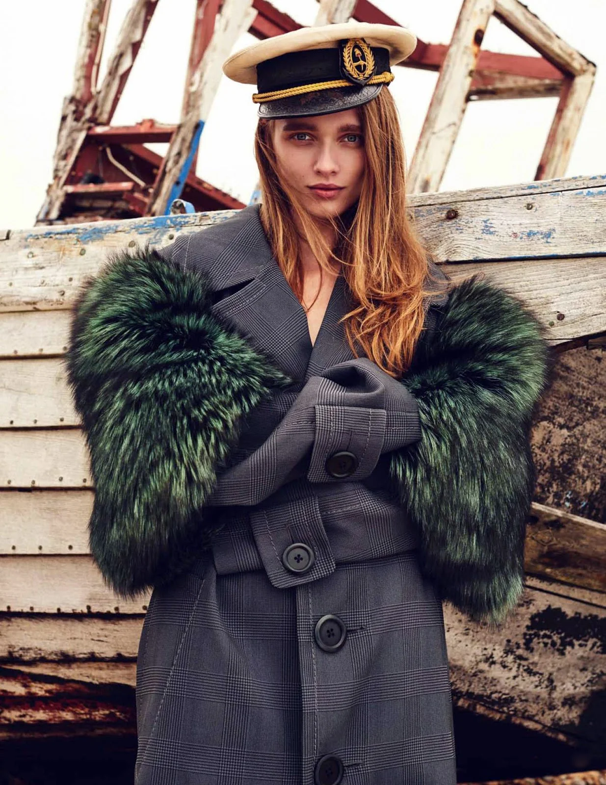 /Model Beegee Margenyte is styled in fall's wool looks in 'Fashion Galore!', styled by Sophia Pera. Photographer Mattias Bjorklund flashes Beegee for Tatler UK September 2016./ Hair by Maarit Niemela; makeup by James Molloy