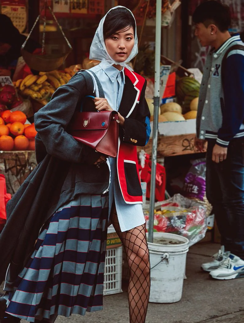/Model Ji Hye Park is styled by Veronique Tristram in 'Mix The UnMIXable', a bold and vibrant color and print story lensed by Enrique Badulescu for Glamour Germany September 2016./ Hair by John Ruidant; makeup by Keiko Takagi