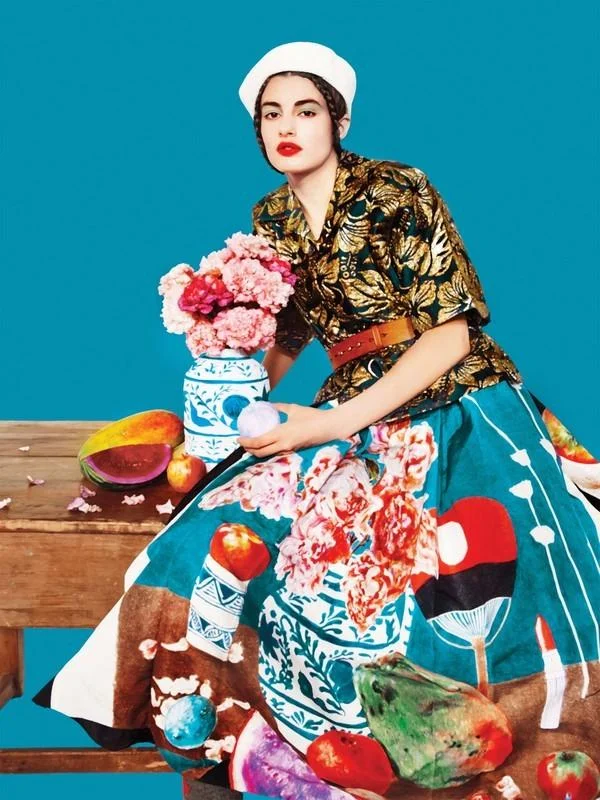 /New York Magazine's 'The Cut' features florals, fruit motifs, and Technicolor prints showcased by model IMG model Diana Silvers. Stylist Rebecca Ramsey chooses artistry from Balenciaga, Marni, Prada and more for images by Erik Madigan Heck./ Hair by Yoichi Tomizawa; makeup by Aya Komatsu