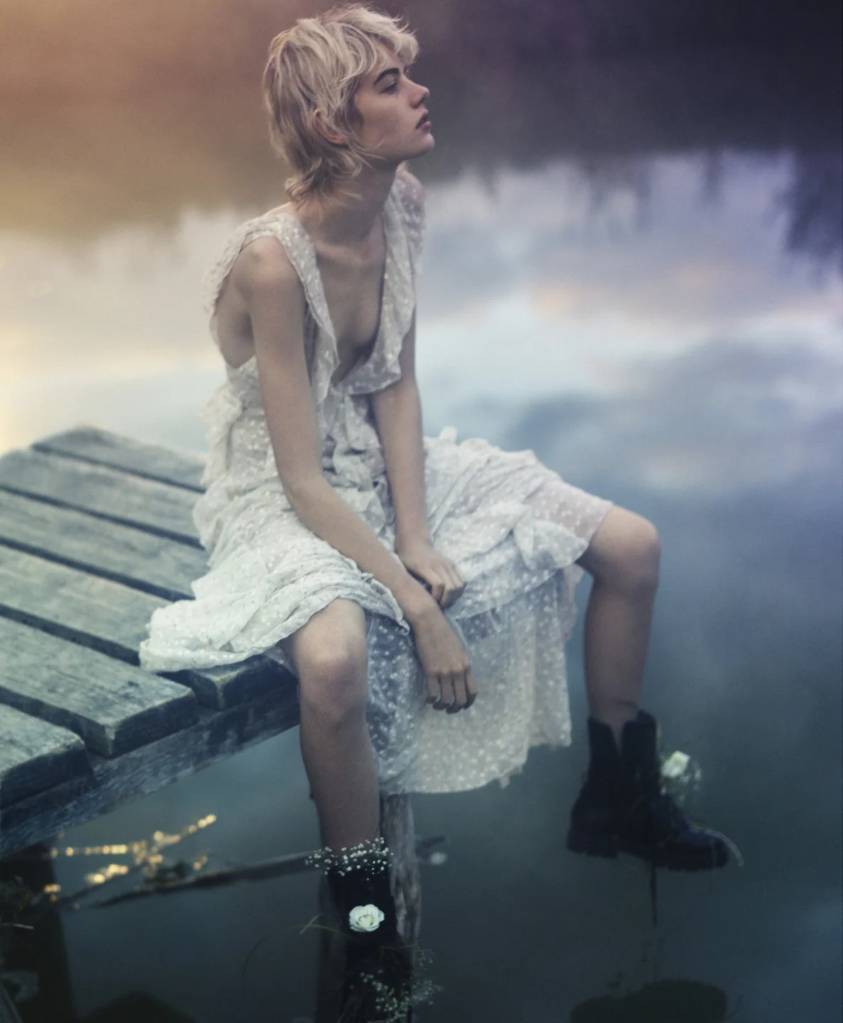 Model Celine Bouly is styled by Margherita Moro in filmy femininity for 'Love At First Light'. Photographer Rory Payne flashes the atmospheric images for The Telegraph Luxury. / Hair by Naoki Komiya; makeup by Jenny Coombs