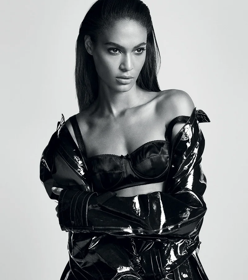 /Supermodel Joan Smalls smolders, styled by Juan Cebrian in little black dresses and less. Txema Yeste captures Smalls for Harper's Bazaar Spain October 2016./ Hair by Soichi Inagaki; makeup by Victor Alvarez