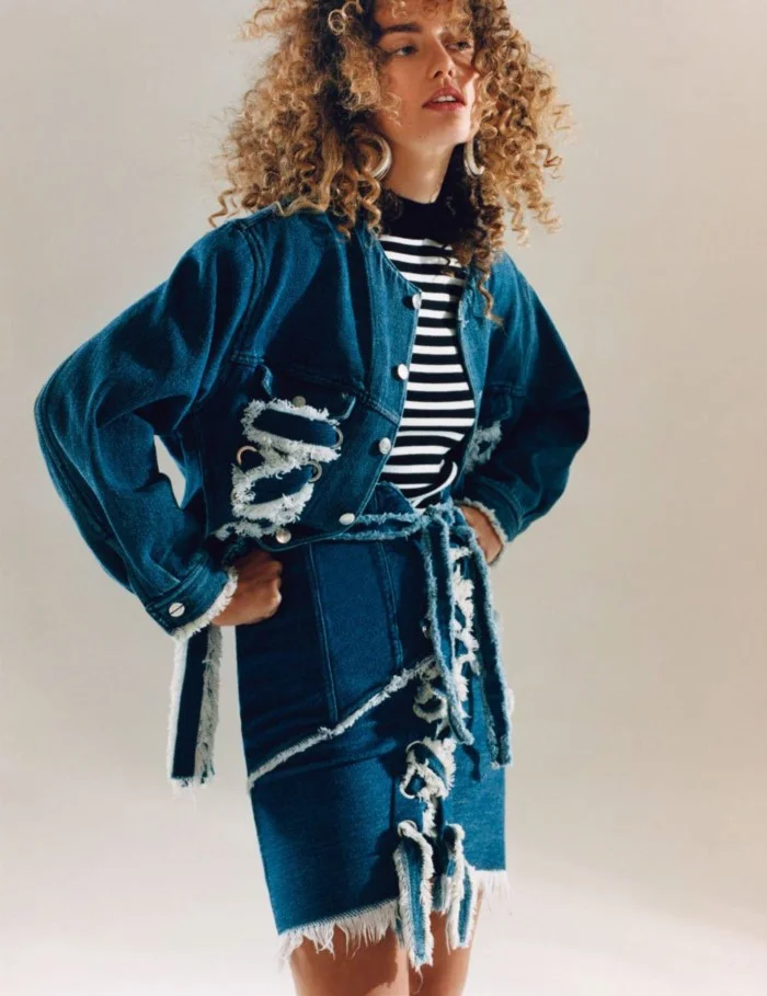 /Model Andreea Diaconu is styled by Veronique Didry in 'The Jean Genie'. Photographer Oliver Hadlee Pearch is behind the lens for Vogue Paris February 2017./ Makeup by Christelle Cocquet; hair by Cyndia Harvey