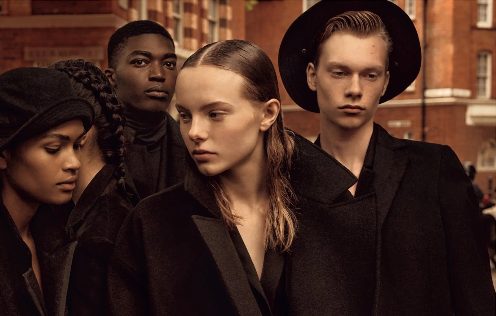 /Craig McDean captures one of his "the gang’s all here' editorials, flashing Hussien Abdulrahman, Eildith Alexander, Amara Blake, Iris Dubois, Joseph Griffin, Jasmine Hussain, Mara Kasanpawiro, Stephanie Omorojor, Georgia Palmer, Kit Warrington & Dahlia Winter in 'On the Street Where You Live.' Alastair McKimm styles the modern immigrants, retro vibe looks for Vogue UK December 2017./ Hair by Anthony Turner; makeup by Lynsey Alexander