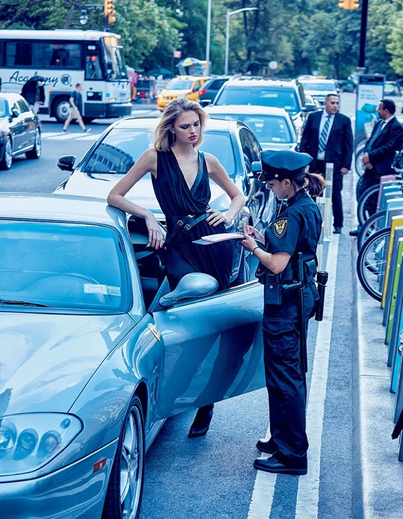 /Dutch model and Victoria's Secret Angel Romee Strijd tries to fast-talk her way through Manhattan, styled by Aurora Sansone in glam looks from Michael Kors' 2017 fall collection. Photographer Walter Chin flashes Romee for Vogue Japan December 2017.