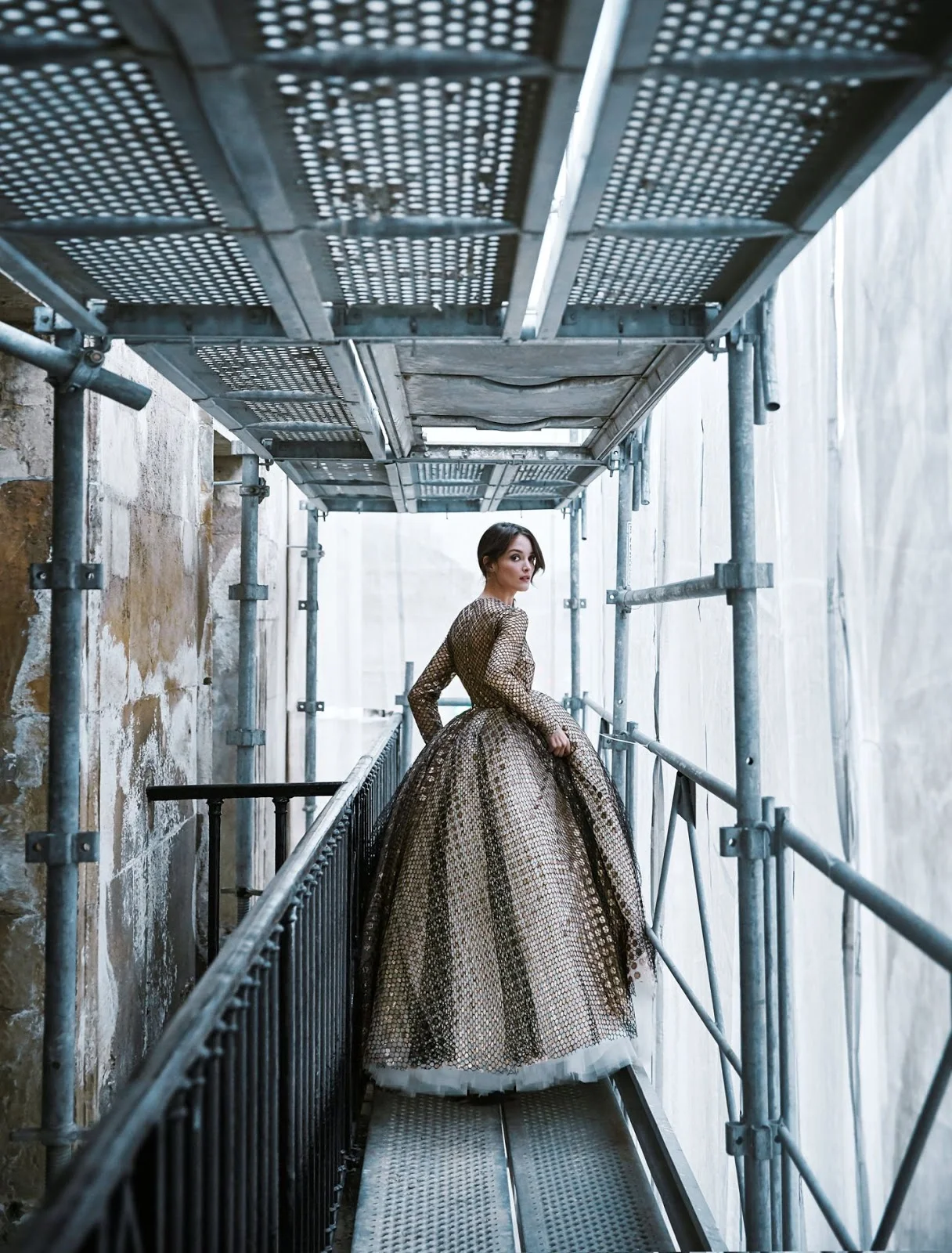 Model Charlotte Le Bon is styled by Julie Gillet in full-frontal regal looks for 'Couture Spell'. Photographer Dominique Isserman is behind the lens for Madame Figaro, February 10, 2017./ Hair by Perrine Rougemont; makeup by Regine Bedot