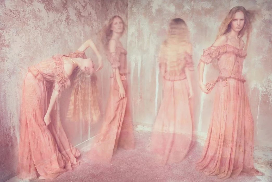 /Models Roos Abels, Kirin Dejonckheere & Jess Picton Warlow are in a 'Dreamy Mood' for 'In Memory of France Sozzani' styled by Katie Shillingford. Solve Sundsbo flashes the ethereal beauties for Vogue Italia March 2017./ Hair by Syd Hayes; makeup by Sam Bryant