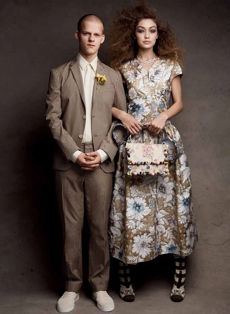 /Supermodel Gigi Hadid joins rising talents Ryan Foust, Ryan Sell, Jake Ryan Flynn, Mike Faist, Andre Holland, Lucas Hedges, Finn Wittrock, Alistan Brammer and Justice Smith in 'Craft Culture' styled by Tabitha Simmons. Patrick Demarchelier captures the artisan-inspired opulence from Chanel, Dolce & Gabbana, Erdem, Saint Laurent and more for Vogue US April 2017./ Hair by Duffy; makeup by Diane Kendal