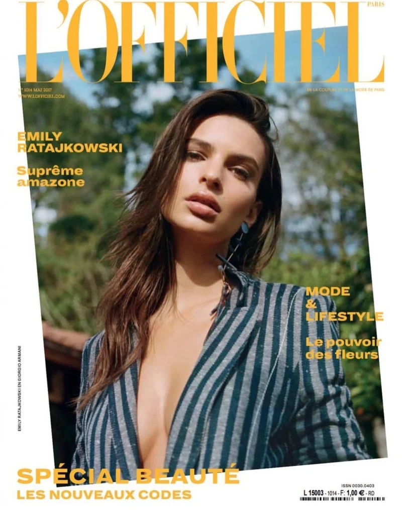 /American born actor and model 'Gone Girl' Emily Ratajkowski is styled by Coquito Cassibba in Fendi, Dior, Miu Miu, Giorgio Armani and more. Emily is lensed by Sam Nixon for the May 2017 cover of L'Officiel Paris May 2017 cover story. / Makeup by Tamah; hair by Ramsell