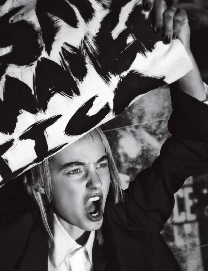 /Top model Maartje Verhoef joins the exploding global protest movement in 'Objection', styled by Joanne Blades. Photographer Hugh Lippe captures one of millions of women at the center of the uprising for Zoo magazine #54 2017./ Hair by Joey George; makeup by Ozzy Salvatierra