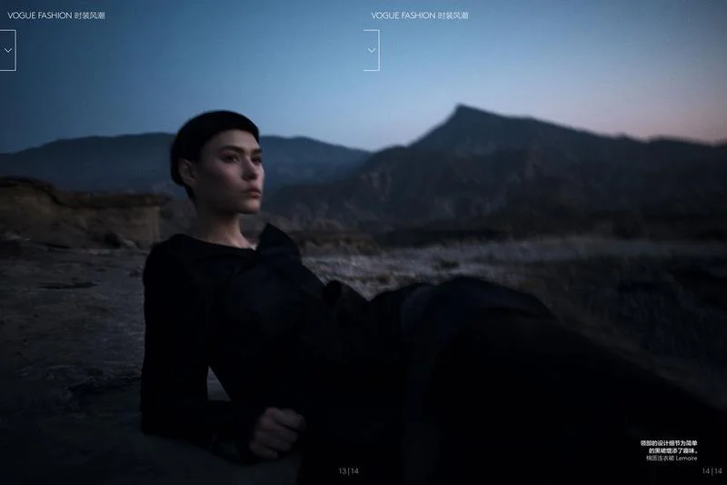 /Model Angelica Erthal is styled by Hannes Hetta in 'Moon Walk', lensed by Vincent van de Wijngaard for Vogue China April 2017./ Hair by Tomohiro Ohashi; makeup by Lotten Holmqvist