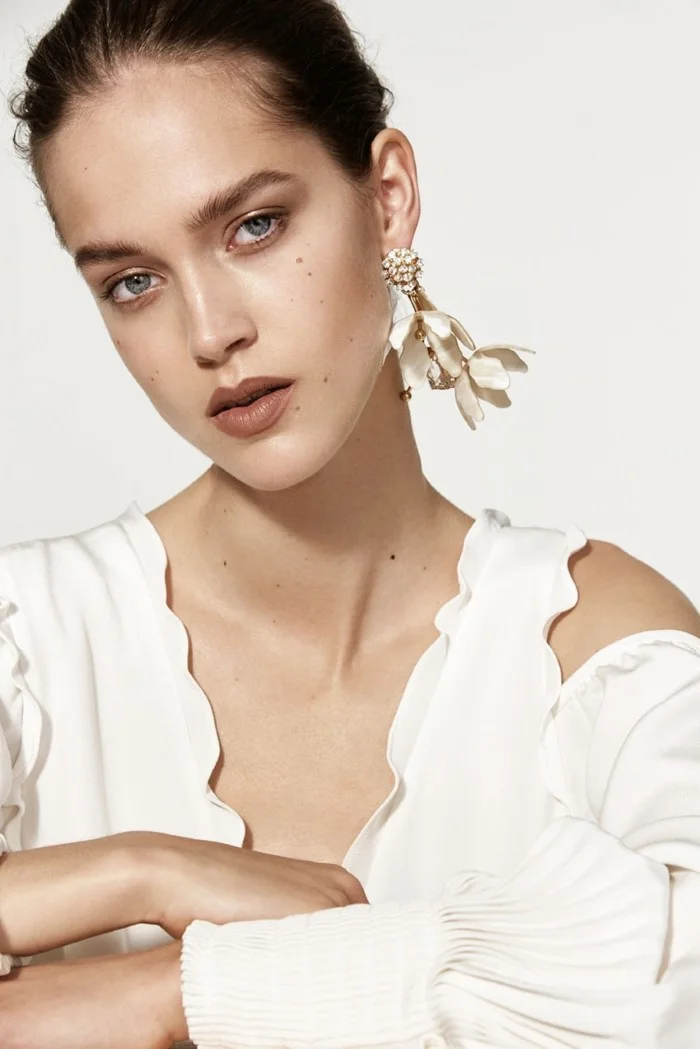 /Julia Jamin is pure elegance, styled by Lorna McGee in starkly fluid, romantic whites. Olivia Frolich flashes Julia for Stella Magazine May 2017./ Hair by Ernesto Montenovo; makeup by Linda Hellqvist Andersson