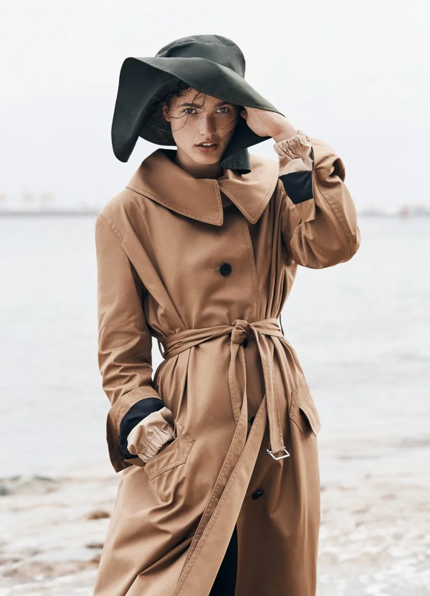 /Top model Julia Van Os is styled by Kate Darvill in fall-forward neutrals lensed by Max Papendieck as 'Strom Rider' for Vogue Australia June 2017./ Hair by Koh; makeup by Linda Jefferyes