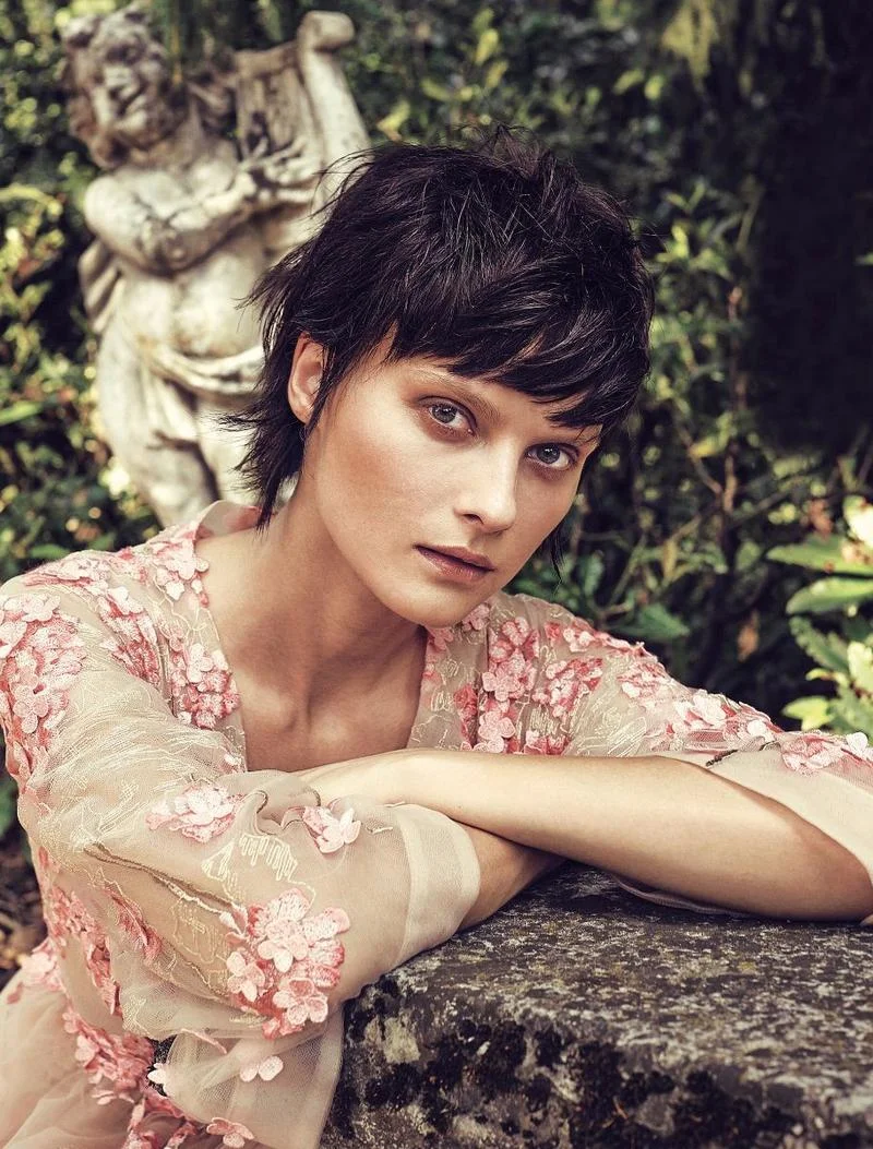 Model Elena Melnik delivers a Gaia-inspired, fashion bouquet in 'Lo Stile in Fiore', romantic fashion looks lensed by Antonin Guidicci for Grazia Italy July 2017./ Hair by Daniele Fatzone; makeup by Elena Pivetta