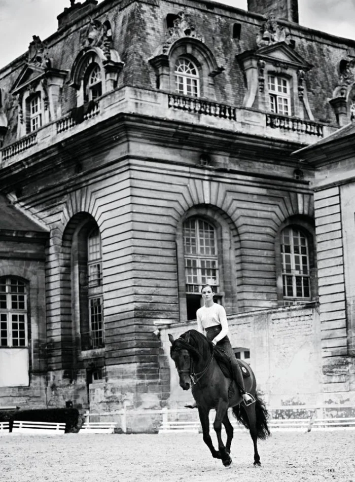 /Model Adrienne Jüliger wears sleek, masculine, horsewoman tailoring styled by France de Jerphanion in Cavalière. Gianluca Fontana captures Adrienne for Air France Madame August/September 2017./ Hair by Olivier de Vriendt; makeup by Helene Vasnier
