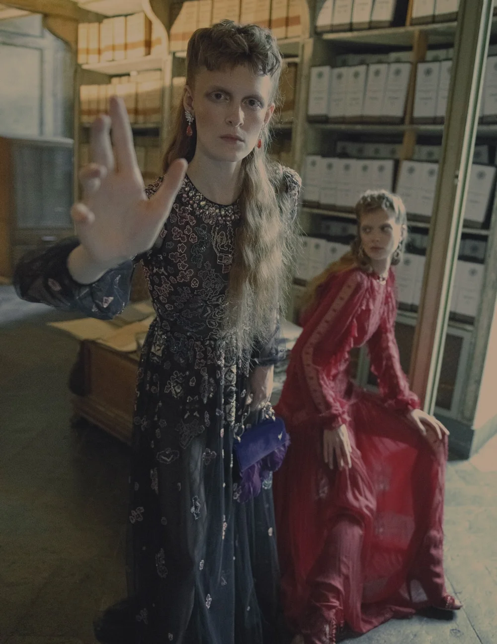 /Photographer Francesco Vincenti captures a dark, old-world elegance, styled by Lucio Colapietro as ‘The Captive Dreamers’. Models Anastasia, Tatiana Katysheva, and Victoria Schons pose for Numéro Russia Fall/Winter 2018./ Hair by Lorenzo Barcella