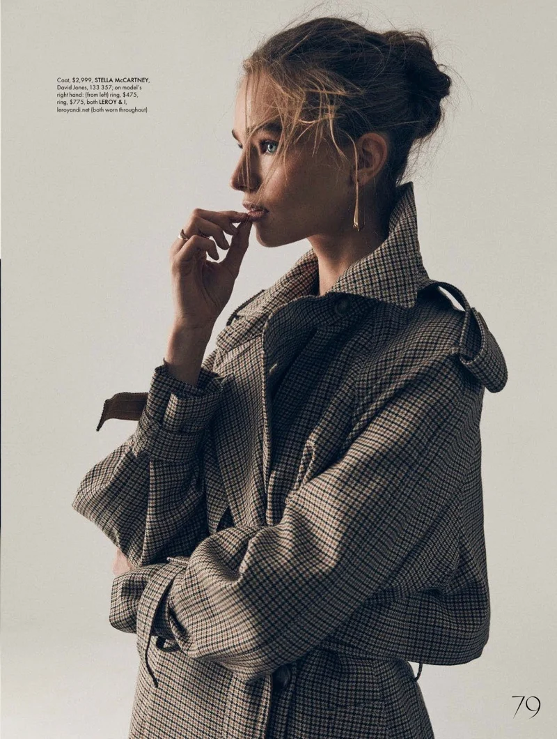/Model Anna Mila Guyenz joins the 'boys Club', styled by Rachel Wayman in tailored patterns and suitings from Stella McCartney, Max Mara, Celine and more. Photographer Darren McDonald is in the studio for Elle Australia March 2018.