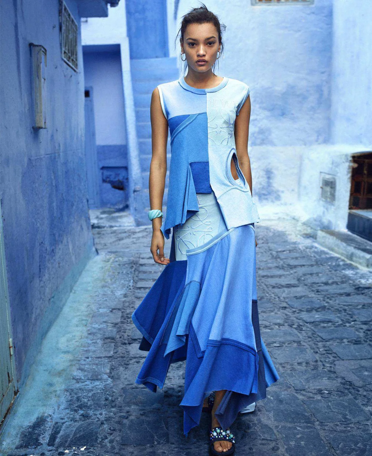 /Rising model Lameka Fox is styled by Anna Trevelyan in 'Azure Dreaming', lensed by Daniel Riera for Harper's Bazaar US April 2018./ Hair by Martin Cullen; makeup by Satoko Watanabe