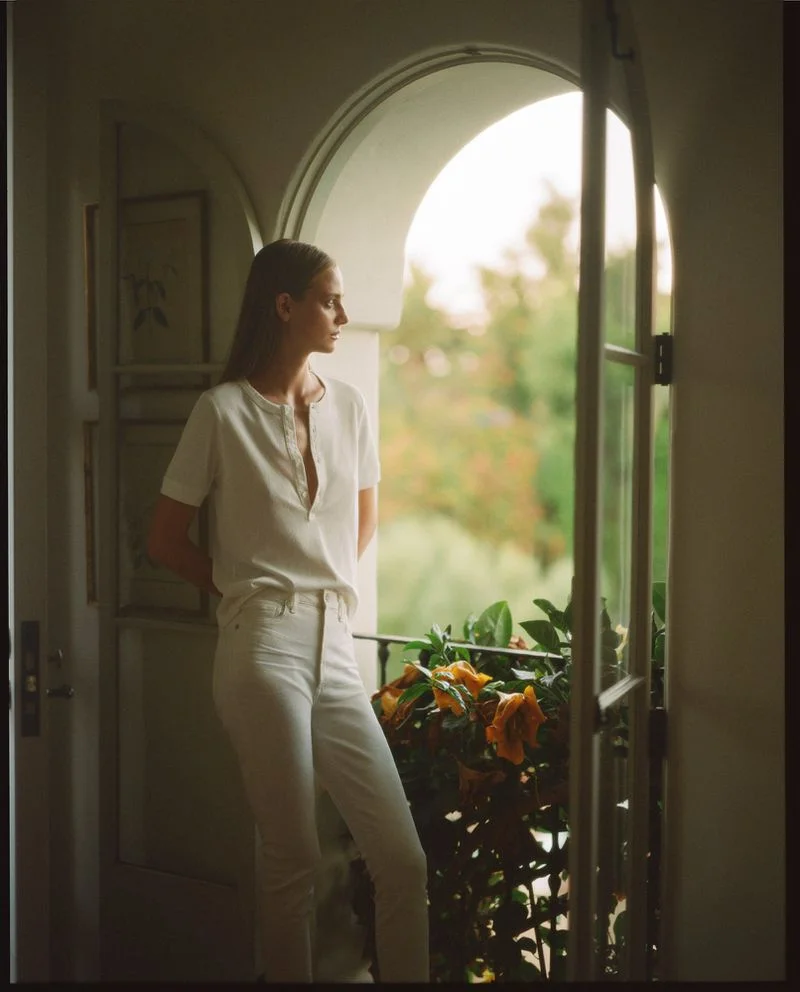 Model Ine Neefs is styled by Annina Mislin in Citizens of Humanity’s Spring 2019 Pre-Market lookbook. Sebastian Sabal-Bruce captures Neefs in the LA-based brand long ahead of the manufacturing transparency, vertical integration trend. On Citizens of Humanity’s website, we meet the workers making each pair of jearns.